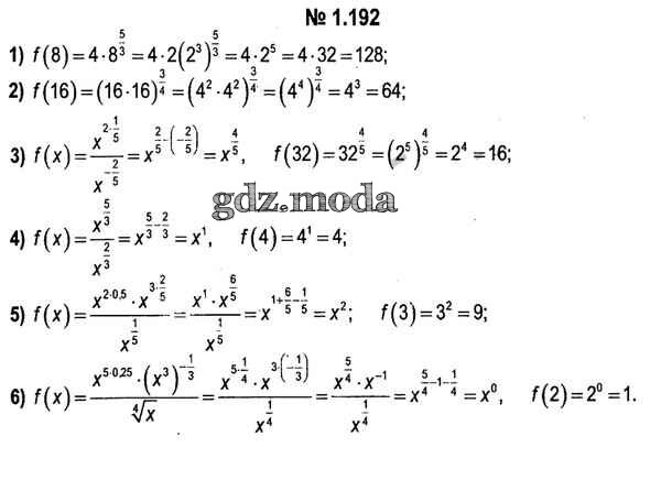 ОТВЕТ на задание № 1.192 Учебник по Алгебре 11 класс Кузнецова