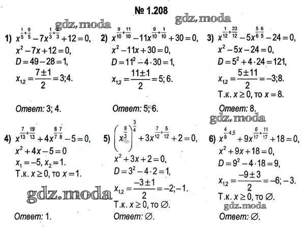 ОТВЕТ на задание № 1.208 Учебник по Алгебре 11 класс Кузнецова