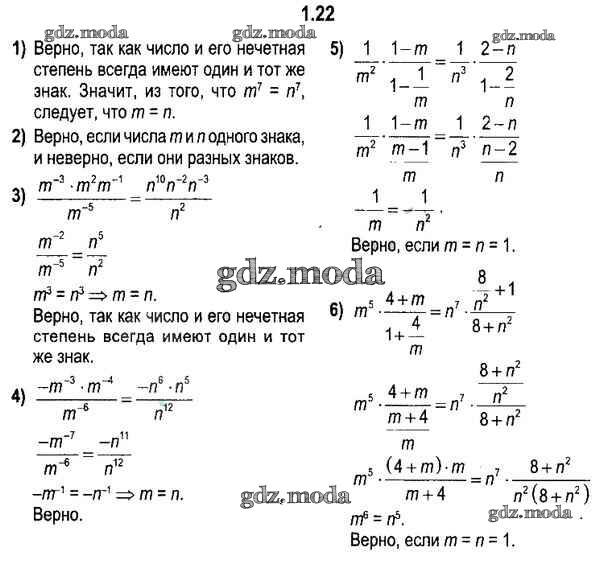 ОТВЕТ на задание № 1.22 Учебник по Алгебре 11 класс Кузнецова