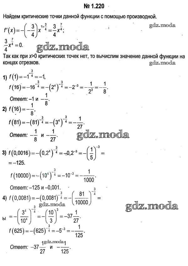 ОТВЕТ на задание № 1.220 Учебник по Алгебре 11 класс Кузнецова