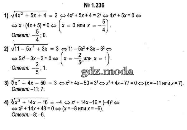 ОТВЕТ на задание № 1.236 Учебник по Алгебре 11 класс Кузнецова