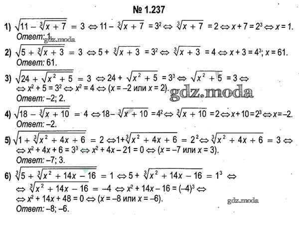 ОТВЕТ на задание № 1.237 Учебник по Алгебре 11 класс Кузнецова