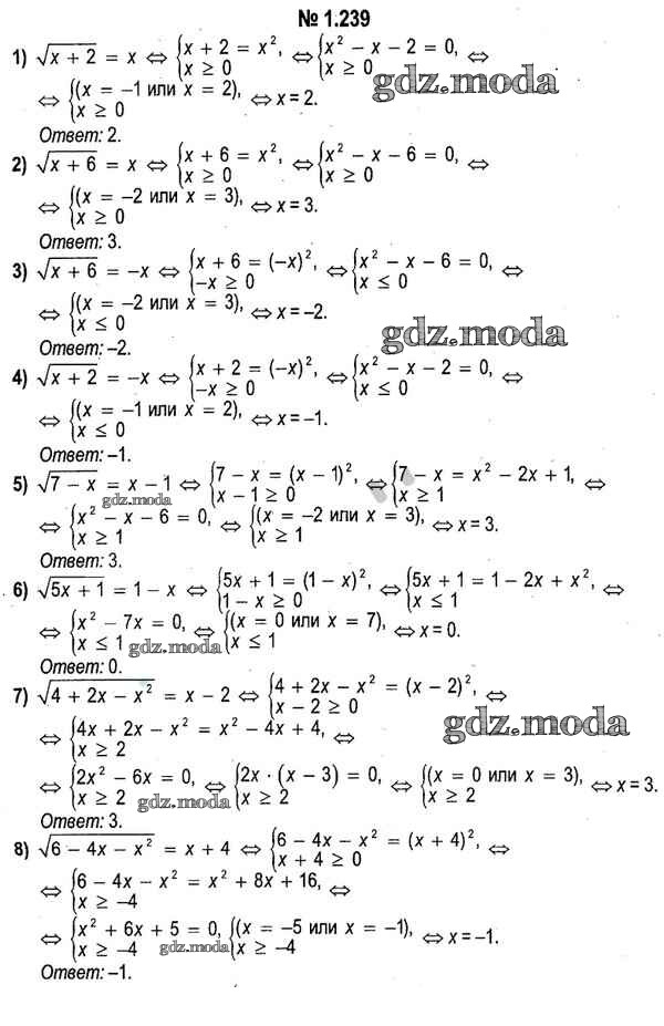 ОТВЕТ на задание № 1.239 Учебник по Алгебре 11 класс Кузнецова