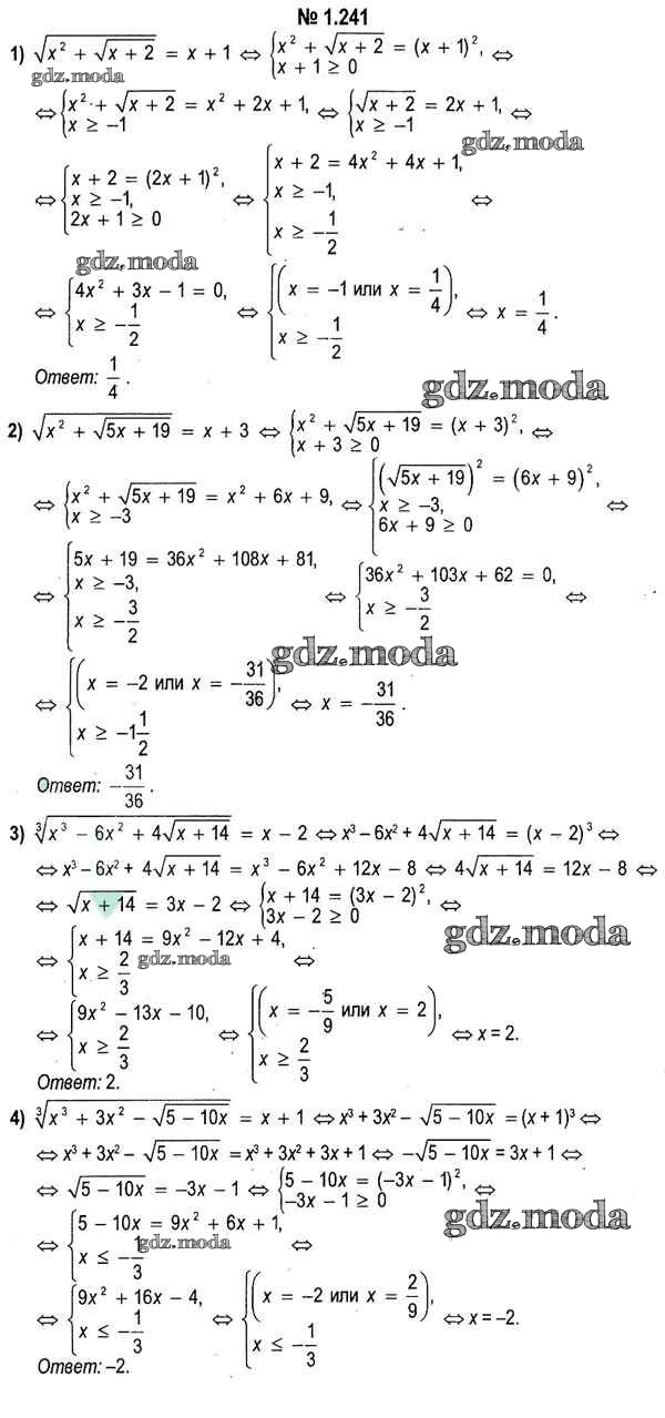 ОТВЕТ на задание № 1.241 Учебник по Алгебре 11 класс Кузнецова