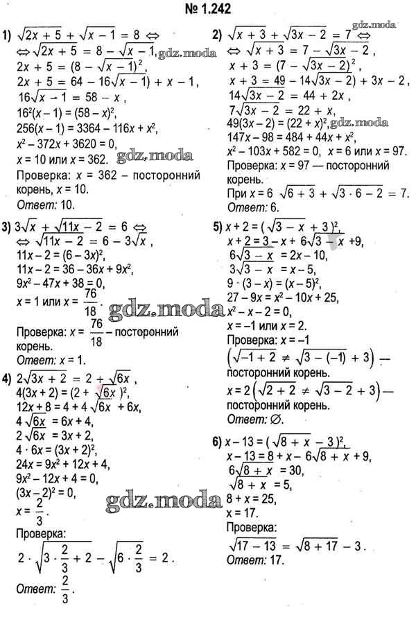 ОТВЕТ на задание № 1.242 Учебник по Алгебре 11 класс Кузнецова