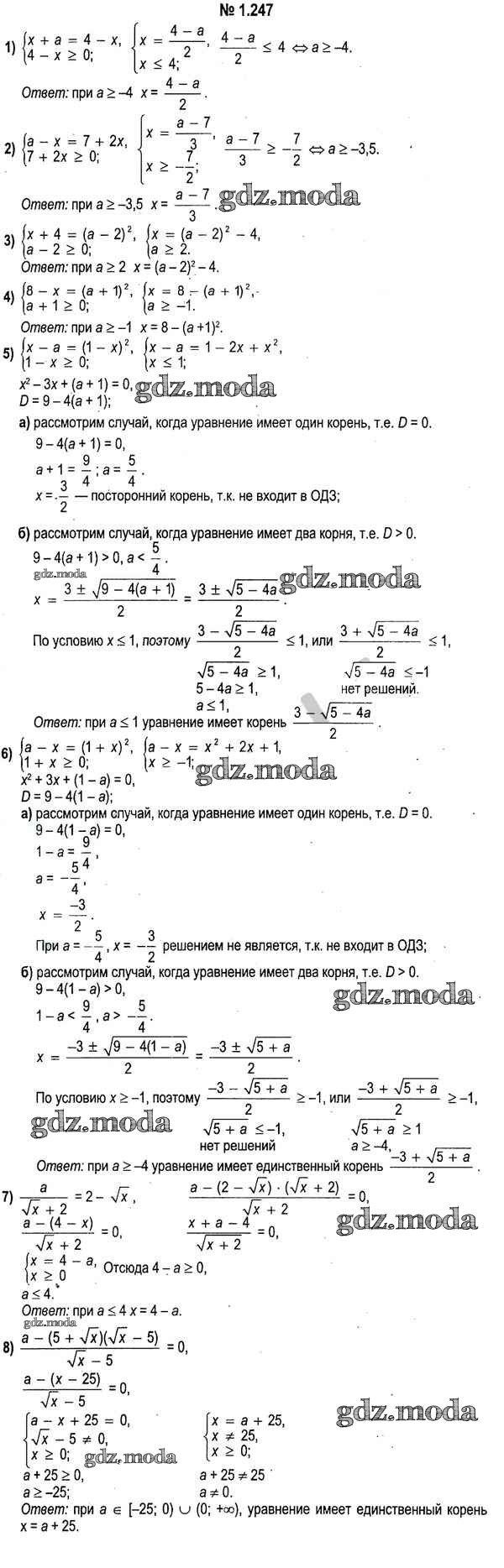 ОТВЕТ на задание № 1.247 Учебник по Алгебре 11 класс Кузнецова