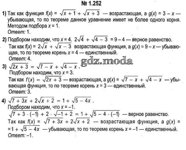 ОТВЕТ на задание № 1.252 Учебник по Алгебре 11 класс Кузнецова