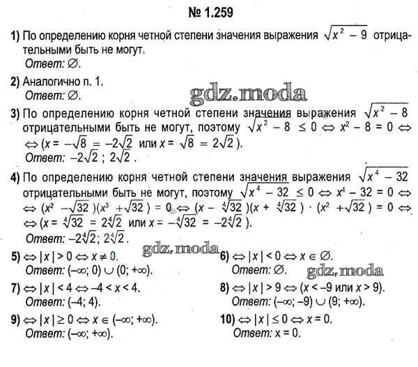 ОТВЕТ на задание № 1.259 Учебник по Алгебре 11 класс Кузнецова