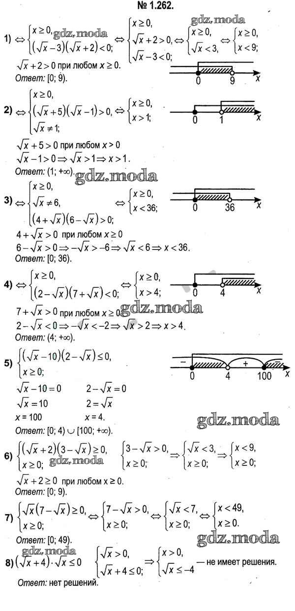 ОТВЕТ на задание № 1.262 Учебник по Алгебре 11 класс Кузнецова
