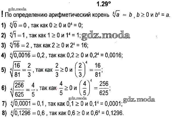 ОТВЕТ на задание № 1.29 Учебник по Алгебре 11 класс Кузнецова