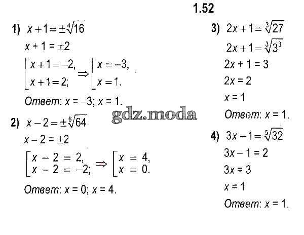 ОТВЕТ на задание № 1.52 Учебник по Алгебре 11 класс Кузнецова