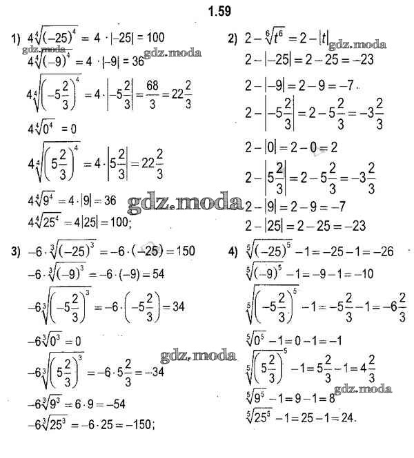 ОТВЕТ на задание № 1.59 Учебник по Алгебре 11 класс Кузнецова