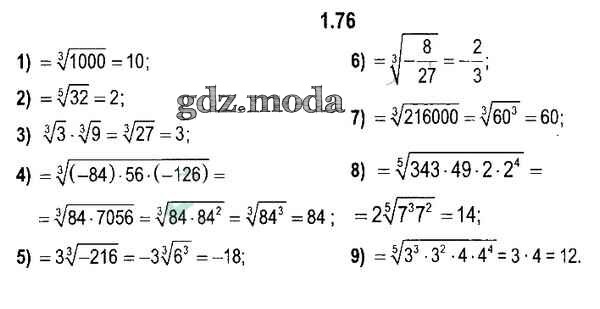 ОТВЕТ на задание № 1.76 Учебник по Алгебре 11 класс Кузнецова