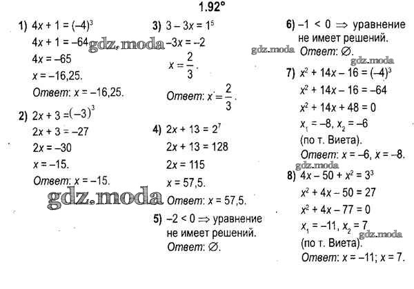 ОТВЕТ на задание № 1.92 Учебник по Алгебре 11 класс Кузнецова
