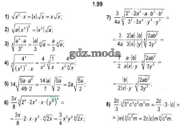 ОТВЕТ на задание № 1.99 Учебник по Алгебре 11 класс Кузнецова