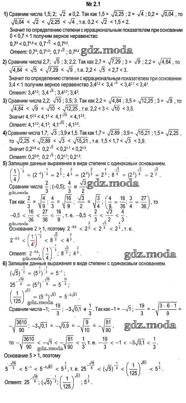 ОТВЕТ на задание № 2.1 Учебник по Алгебре 11 класс Кузнецова
