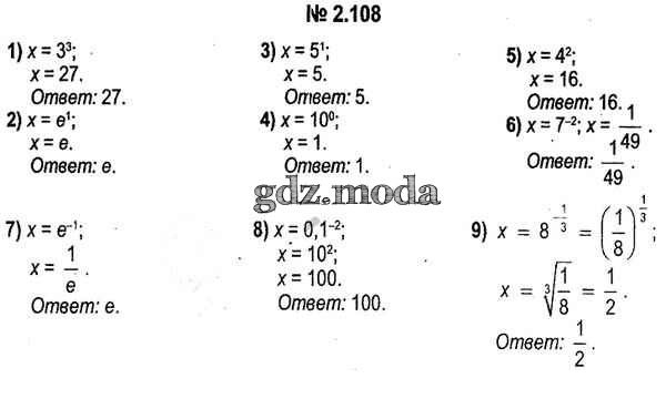 ОТВЕТ на задание № 2.108 Учебник по Алгебре 11 класс Кузнецова