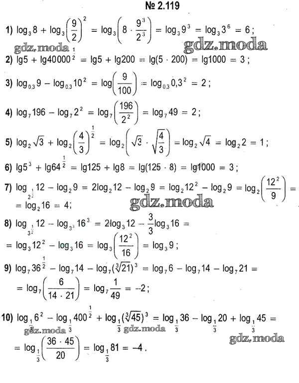 ОТВЕТ на задание № 2.119 Учебник по Алгебре 11 класс Кузнецова