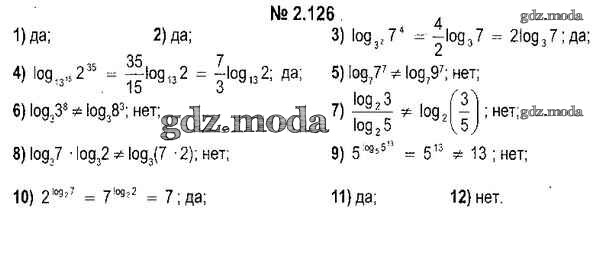 ОТВЕТ на задание № 2.126 Учебник по Алгебре 11 класс Кузнецова