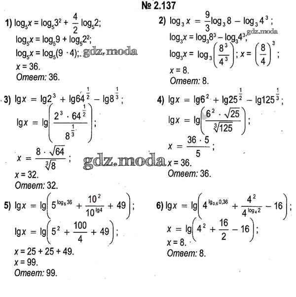 ОТВЕТ на задание № 2.137 Учебник по Алгебре 11 класс Кузнецова