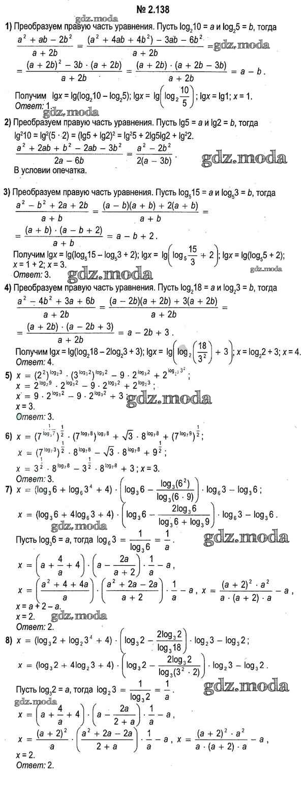 ОТВЕТ на задание № 2.138 Учебник по Алгебре 11 класс Кузнецова