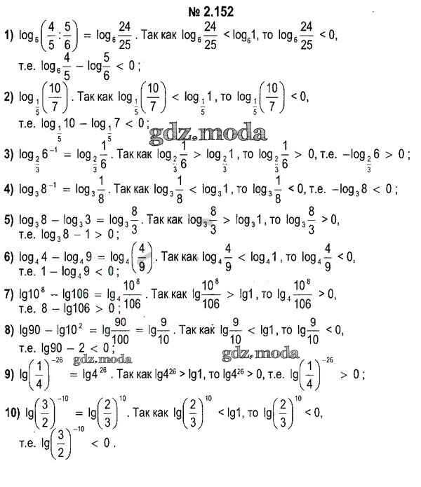 ОТВЕТ на задание № 2.152 Учебник по Алгебре 11 класс Кузнецова