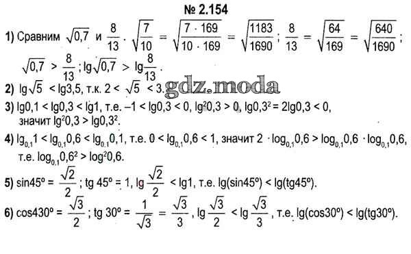 ОТВЕТ на задание № 2.154 Учебник по Алгебре 11 класс Кузнецова