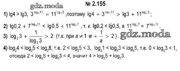 ОТВЕТ на задание № 2.155 Учебник по Алгебре 11 класс Кузнецова