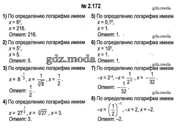 ОТВЕТ на задание № 2.172 Учебник по Алгебре 11 класс Кузнецова