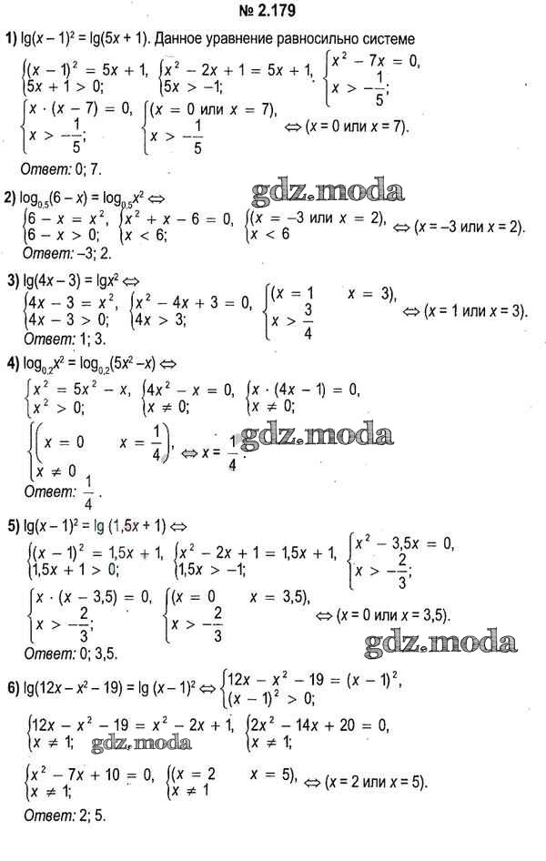 ОТВЕТ на задание № 2.179 Учебник по Алгебре 11 класс Кузнецова