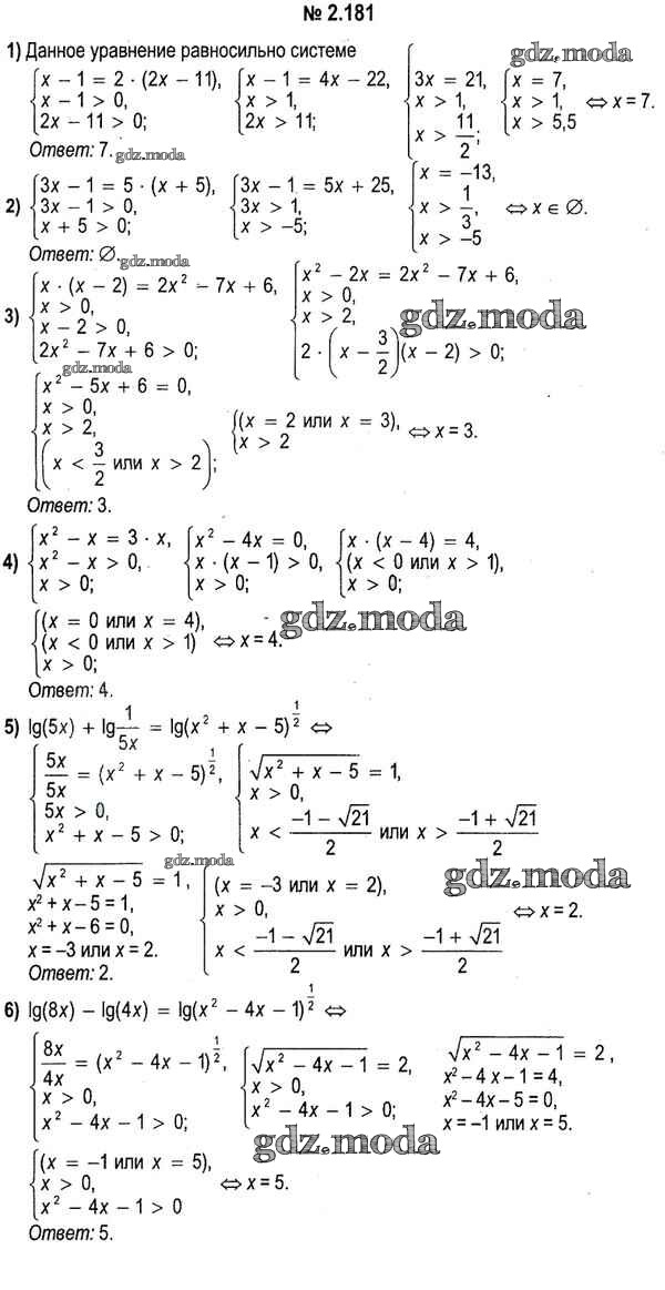ОТВЕТ на задание № 2.181 Учебник по Алгебре 11 класс Кузнецова