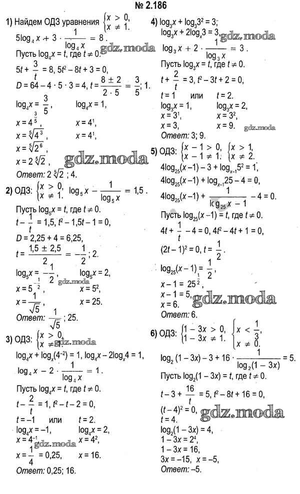 ОТВЕТ на задание № 2.186 Учебник по Алгебре 11 класс Кузнецова