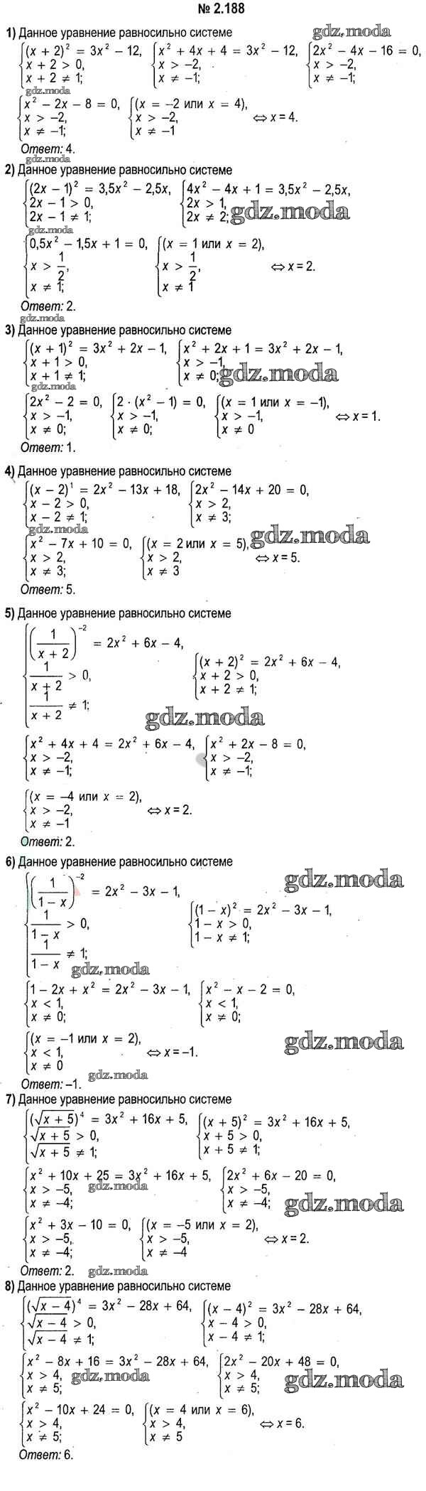 ОТВЕТ на задание № 2.188 Учебник по Алгебре 11 класс Кузнецова