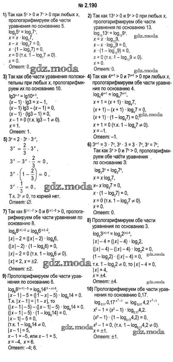 ОТВЕТ на задание № 2.190 Учебник по Алгебре 11 класс Кузнецова