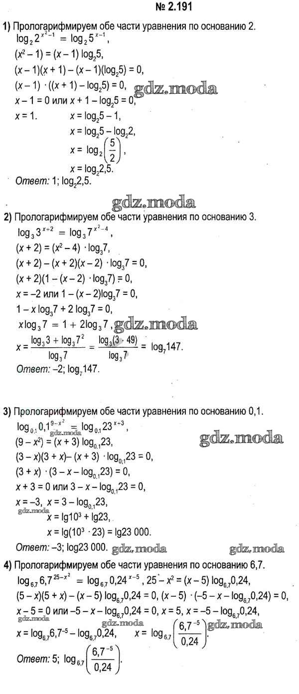 ОТВЕТ на задание № 2.191 Учебник по Алгебре 11 класс Кузнецова