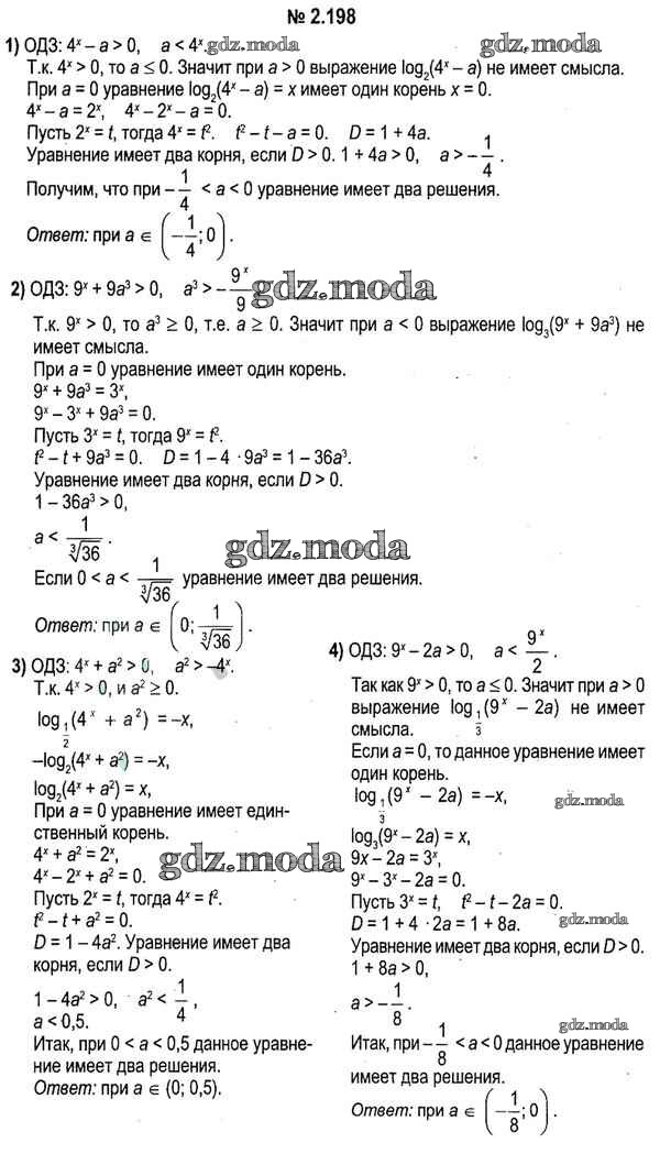 ОТВЕТ на задание № 2.198 Учебник по Алгебре 11 класс Кузнецова