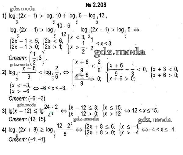 ОТВЕТ на задание № 2.208 Учебник по Алгебре 11 класс Кузнецова