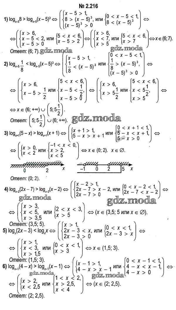 ОТВЕТ на задание № 2.216 Учебник по Алгебре 11 класс Кузнецова