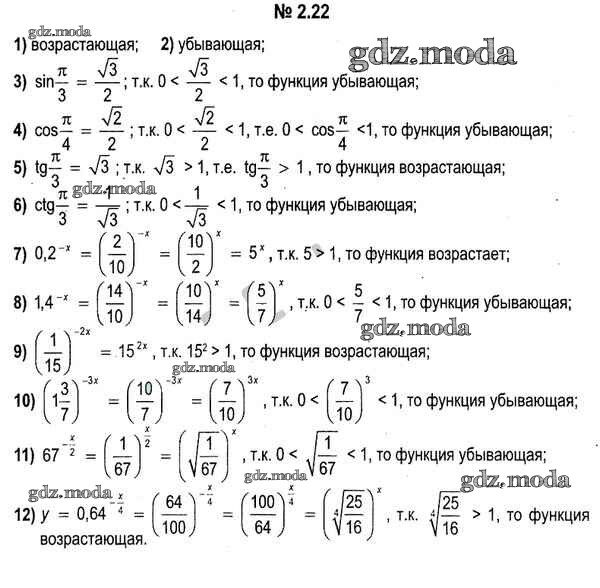 ОТВЕТ на задание № 2.22 Учебник по Алгебре 11 класс Кузнецова