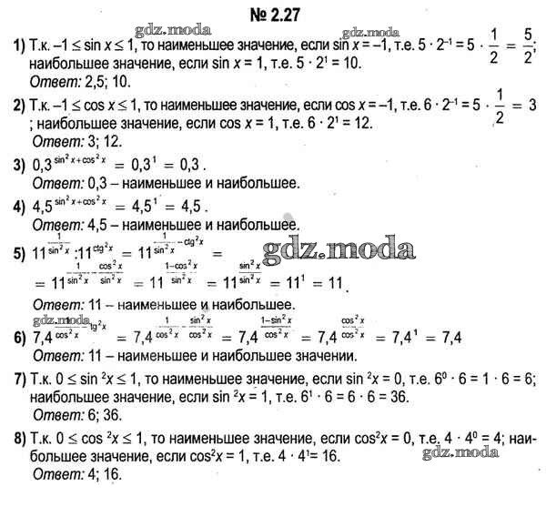 ОТВЕТ на задание № 2.27 Учебник по Алгебре 11 класс Кузнецова