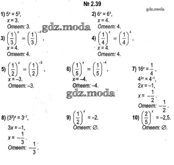 ОТВЕТ на задание № 2.39 Учебник по Алгебре 11 класс Кузнецова