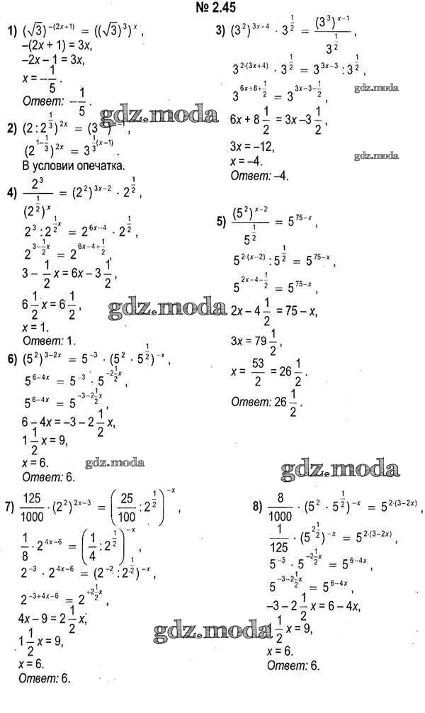 ОТВЕТ на задание № 2.45 Учебник по Алгебре 11 класс Кузнецова