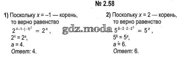 ОТВЕТ на задание № 2.58 Учебник по Алгебре 11 класс Кузнецова