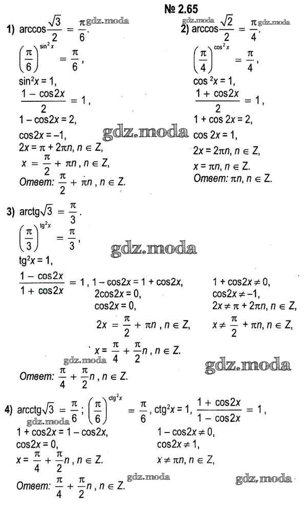 ОТВЕТ на задание № 2.65 Учебник по Алгебре 11 класс Кузнецова