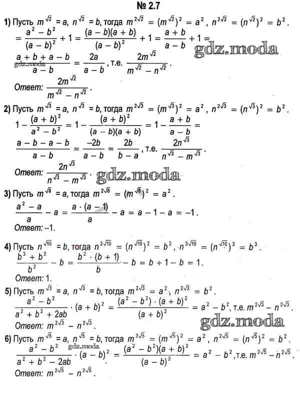 ОТВЕТ на задание № 2.7 Учебник по Алгебре 11 класс Кузнецова