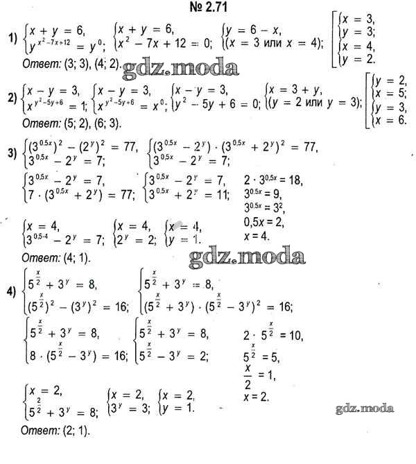 ОТВЕТ на задание № 2.71 Учебник по Алгебре 11 класс Кузнецова
