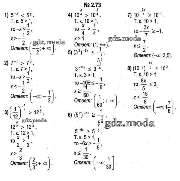 ОТВЕТ на задание № 2.73 Учебник по Алгебре 11 класс Кузнецова