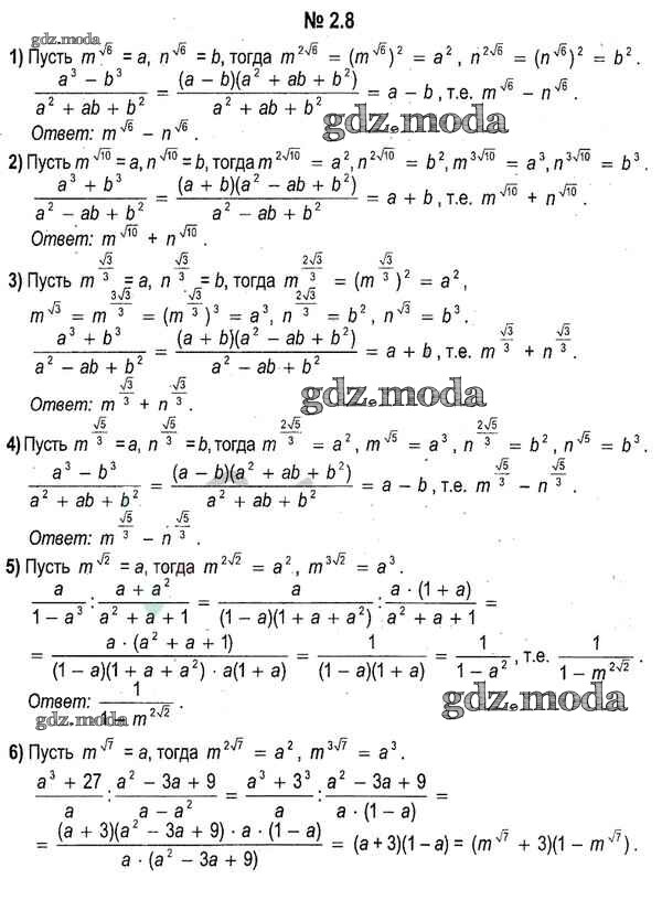 ОТВЕТ на задание № 2.8 Учебник по Алгебре 11 класс Кузнецова