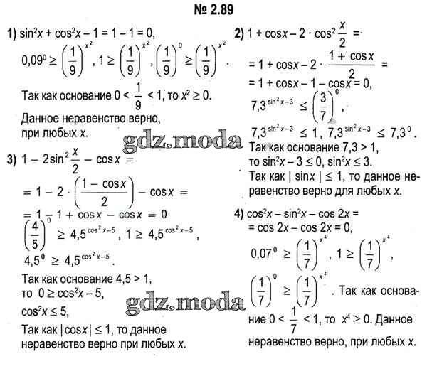 ОТВЕТ на задание № 2.89 Учебник по Алгебре 11 класс Кузнецова