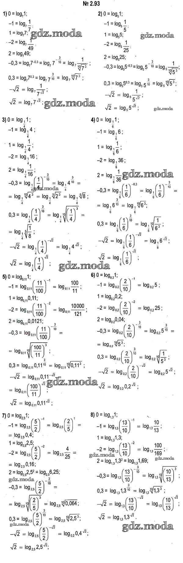 ОТВЕТ на задание № 2.93 Учебник по Алгебре 11 класс Кузнецова